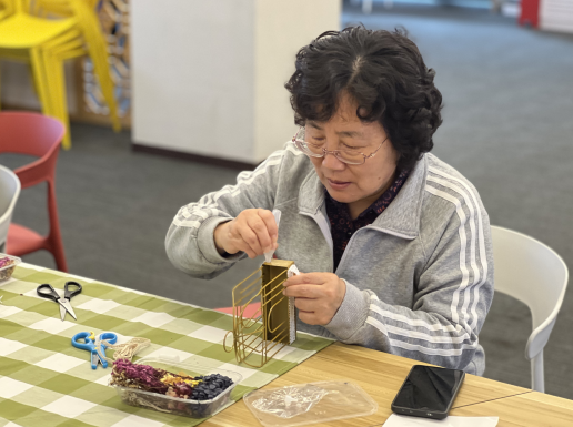 “现代鸟笼制作形成南北两派,南派鸟笼为方形,以苏州为代表。苏州制作的鸟笼,即为‘苏派鸟笼’,因为其方形,又被称为‘官印笼’......”活动伊始,志愿者向居民们讲述了苏派鸟笼的文化渊源和工艺特点,现场体验者们都听得津津有味。随后,在志愿者的带领下,大家迫不及待发挥自己的想象力,开启了苏派鸟笼制作之旅,活动现场气氛热烈,大家一边动手创作,一边互动交流。经过一番精心制作,一件件精美的苏派鸟笼作品呈现在大家眼前,不仅展现了居民的巧思妙手,更生动诠释了非遗工艺的无穷魅力,大家纷纷拿着自己亲手制作的作品进行展示,脸上洋溢着满满的成就感与喜悦。