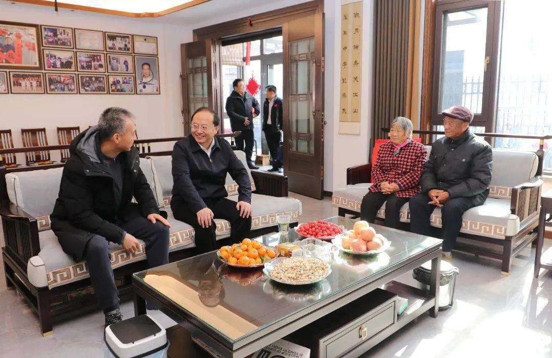 在航天员费俊龙父母家中,查颖冬认真聆听照片墙上的一张张照片的背后故事,了解英雄航天员的成长历程,并亲切慰问费俊龙父母,向英雄航天员致敬,叮嘱两位老人保重身体,祝福他们身体健康、新春快乐。