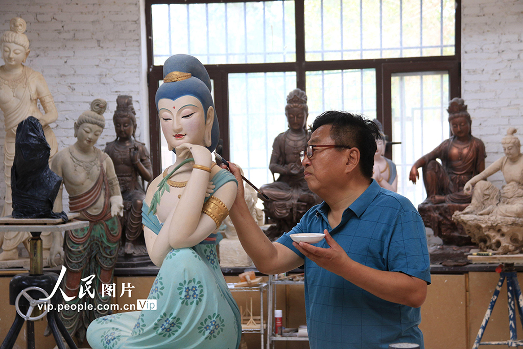 近年来,甘肃省敦煌市的艺术工作者积极传承敦煌彩塑制作技艺、敦煌石粉彩绘技艺、敦煌剪纸等非物质文化遗产代表性项目,弘扬非遗文化,展示敦煌艺术魅力。(作者:张晓亮)