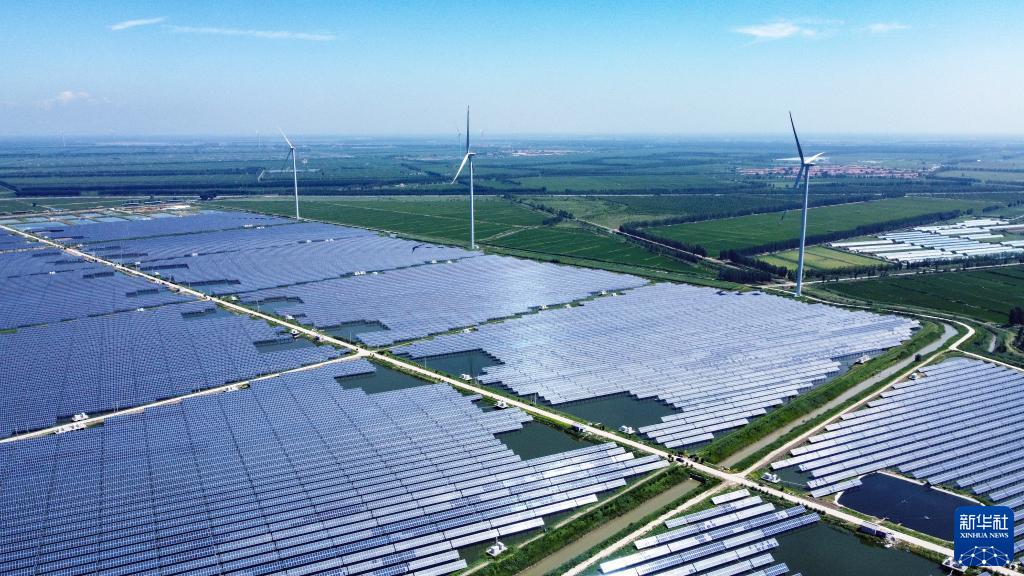 这是在天津市宁河区宁河镇大月河村拍摄的110千伏大月河光伏电站(7月18日摄,无人机照片)。