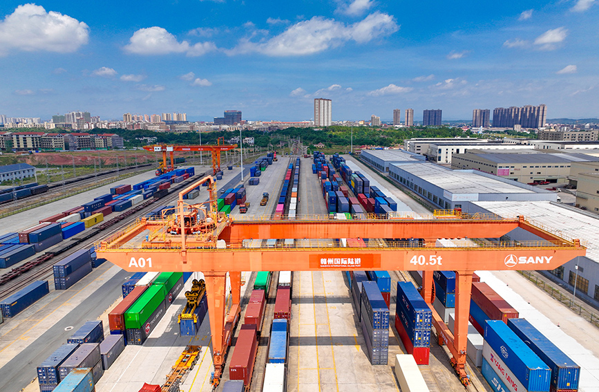 江西赣州:国际陆港货运忙