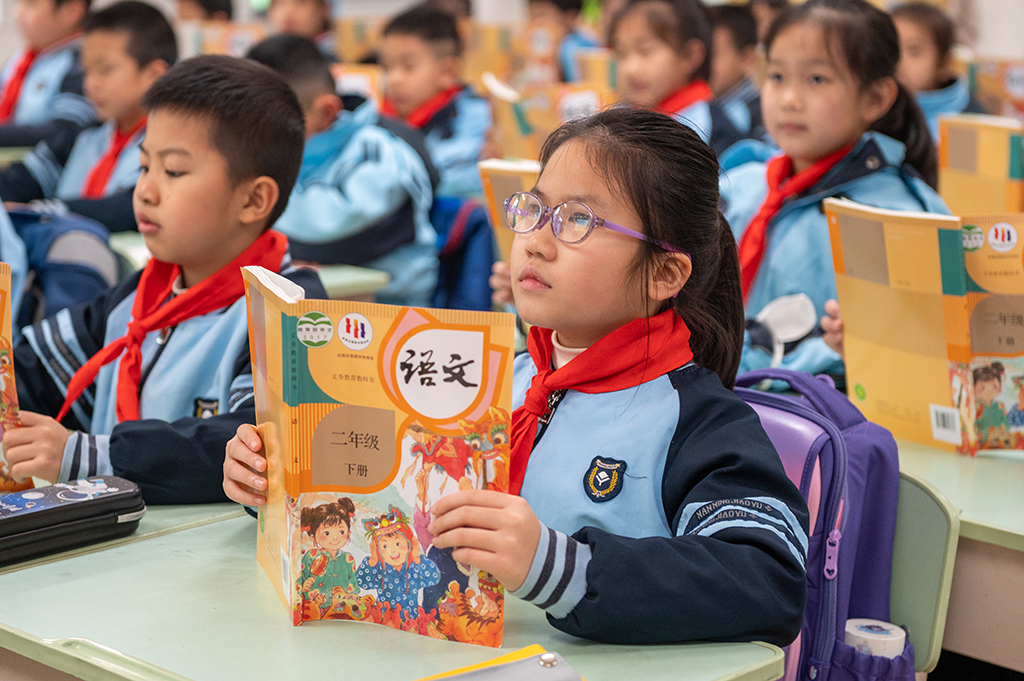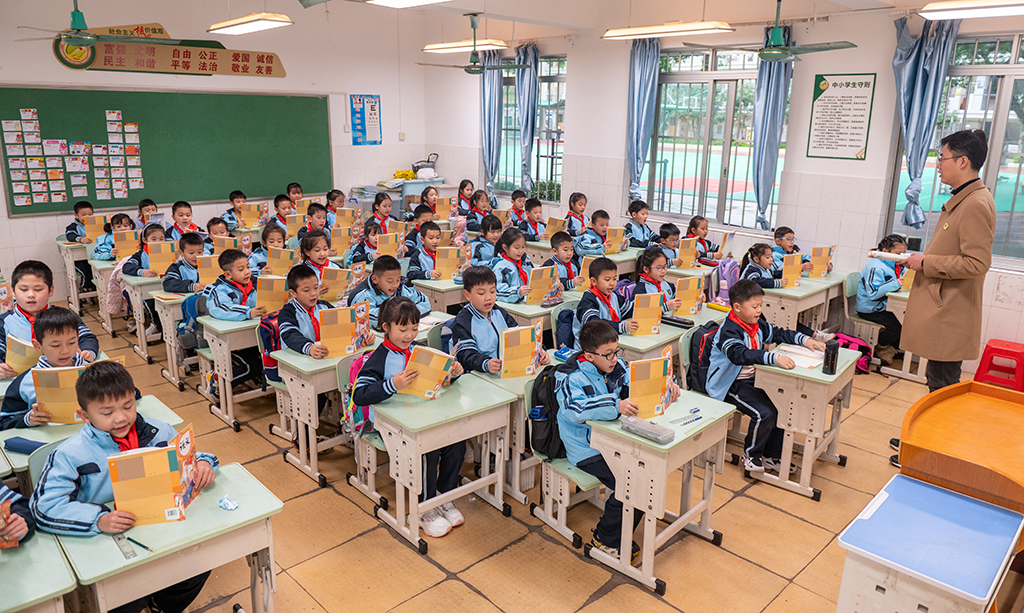 2月6日,广西南宁市民主路小学教育集团民主校区,学生们在语文课上朗读课文。人民网记者严立政摄