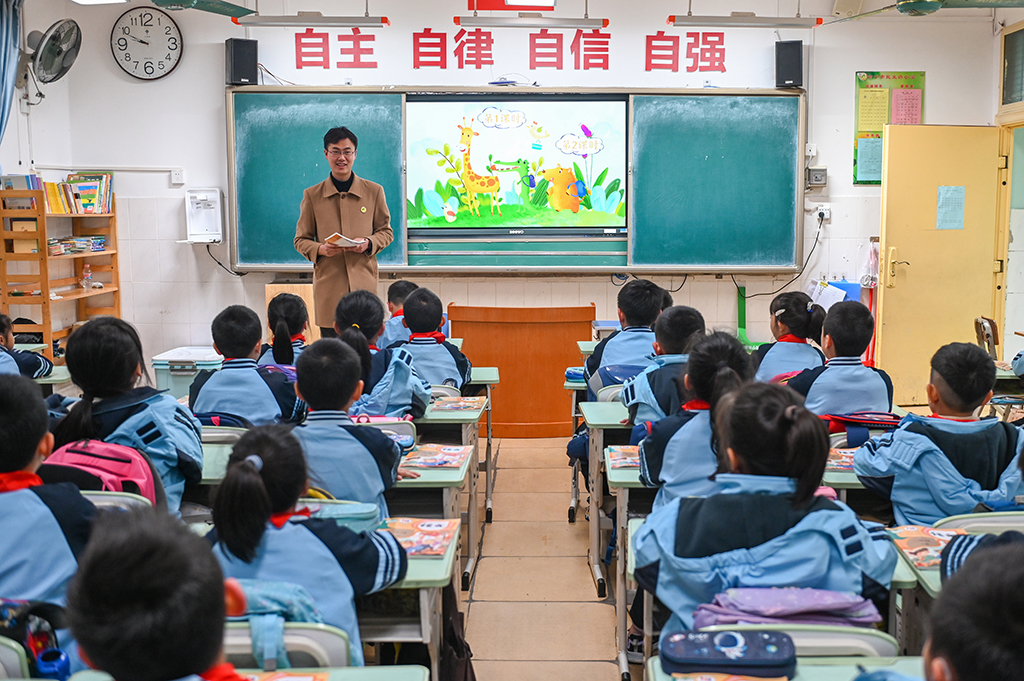 2月6日,广西南宁市民主路小学教育集团民主校区,学生们在上语文课。人民网记者 严立政摄