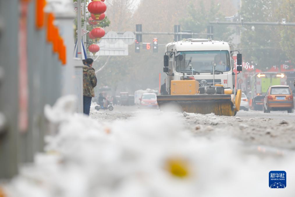 12月14日,在河南省焦作市武陟县,扫雪车在街头作业。