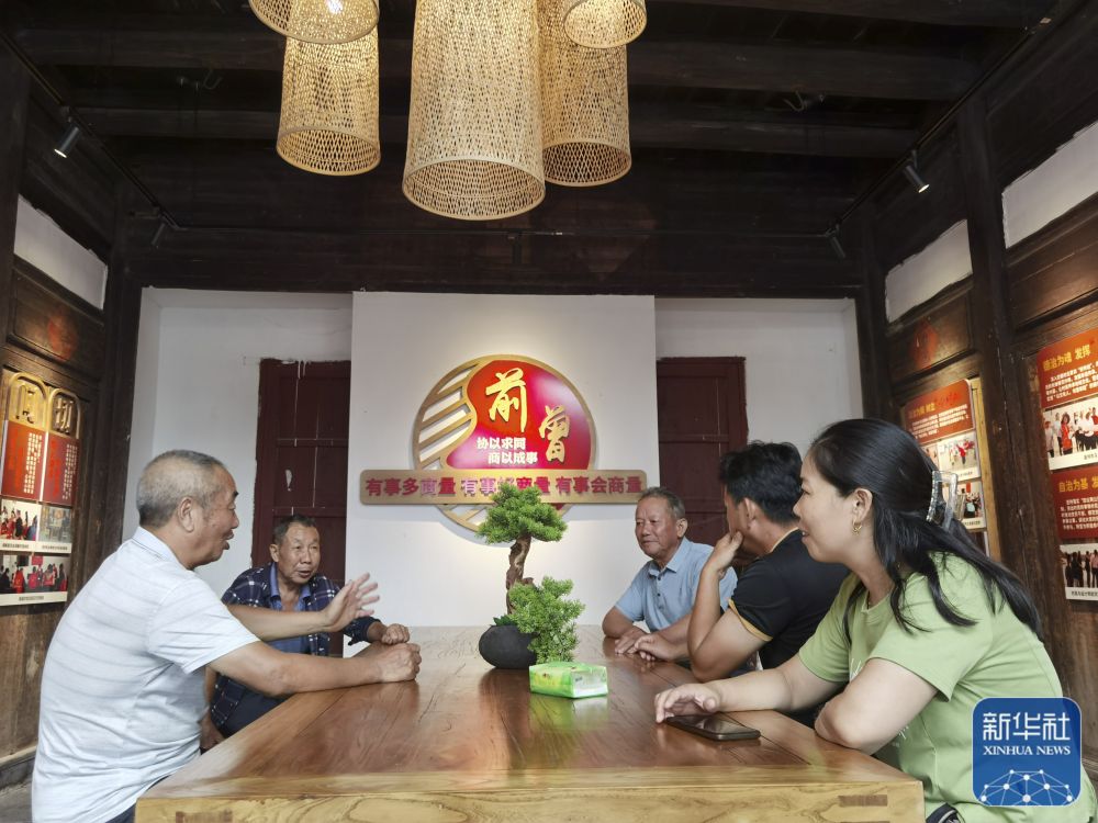 ↑2023年9月5日,在江西南昌进贤县泉岭乡前溪村,村民在议事馆内商讨村内沟渠修建事宜。近年来,江西省南昌市依托农村特色资源,培育特色优势主导产业,发掘农村文化遗产,打造美丽宜居乡镇、村庄、庭院,特色种植、餐饮休闲和乡村旅游等产业蓬勃发展,有效促进农业增效、农民增收和美丽乡村建设。