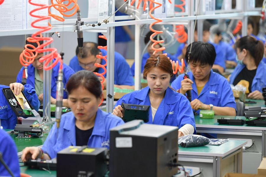 2024年5月22日,在位于日照市东港区新旧动能转换示范基地的山东比特智能科技股份有限公司新厂区,工人在车间内工作。新华社记者 孟涛 摄