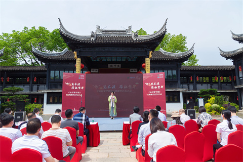 吴中区邮政局副局长陆雪青致辞,今天发行的《姑苏繁华图》特种邮票,原作是清代宫廷画家、苏州人徐扬创作的纸本长卷,取“图写太平”之意,此画三分之一画面展现的是清代繁华的木渎,体现出木渎历来是文化大镇、历史名镇、经济强镇、商贸重镇。在美丽、繁华的木渎古镇举办“邮”览木渎 探秘繁华—《姑苏繁华图》特种邮票首发活动,使这场历史名画与美丽木渎“古与今”的“对话”,更加具有特殊的纪念意义。