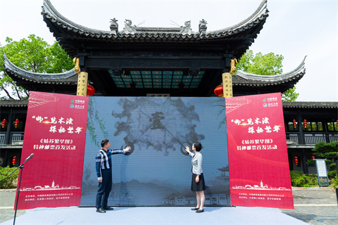 木渎镇党委副书记、政协工委主任孔岳荣,吴中区邮政局局长沈黎上台,共同为《姑苏繁华图》特种邮票首发揭幕。