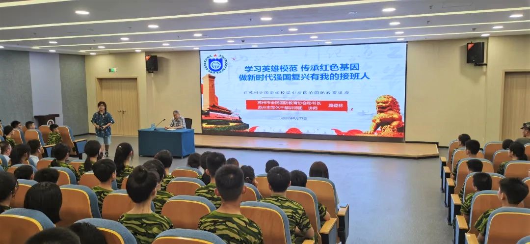 近日,苏州市中小学生陆续迎来新学期,苏州市军休干部讲师团组织开展“开学第一课”系列宣讲活动,走进常熟海虞中学、苏州外国语学校以及西安交通大学苏州附属中学新生军训营,为初一、高一共计2000余名新生开展“红心向党 绿装报国”红色教育专题系列活动,打造流动的青春思政课堂。