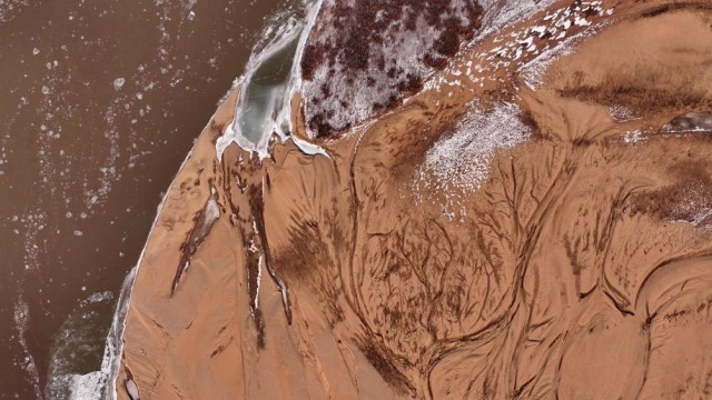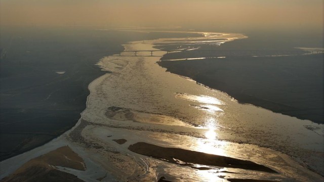 这是12月24日在黄河宁夏段拍摄的流凌景观(无人机照片)。