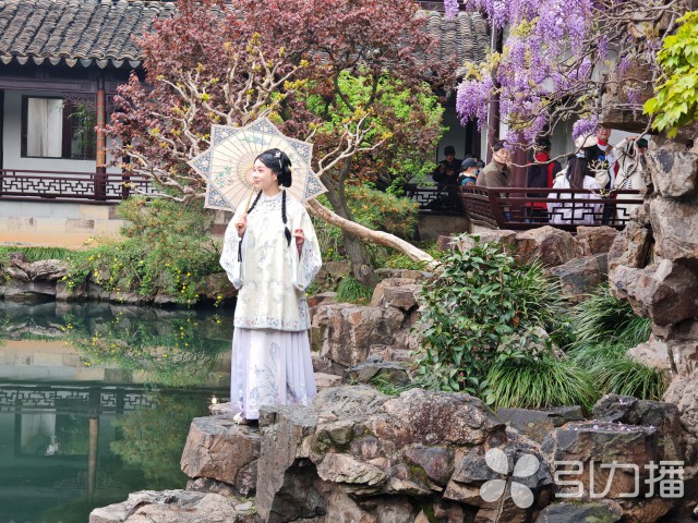错落有致,移步换景,春日的苏州园林满眼皆画。在网师园里,除了网红紫藤,殿春簃的花窗前、竹外一枝轩的回廊下、濯缨水阁前的山石上,都成了“小仙女”的绝佳取景地。而在位于阊门内天库前文衙弄的艺圃,同样吸引了众多汉服爱好者。乳鱼亭、垂云峰、度香桥,她们身着汉服,款款行走在这些带着美好意象和典故的建筑中,或是跟着摄影师的指挥,或是听从小伙伴的安排,定格青春的瞬间,用婀娜的身姿扮靓古典园林。