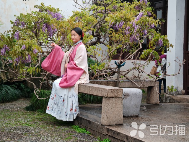 “天哪!怎么会有这么多同道中人。”4月10日下午4点钟,22岁的王亦然姑娘身着一袭紫色齐腰襦裙,从网师园万卷堂左转刚步入中部山水景物区,就发出这样一声惊呼。记者站在月到风来亭内向东望去,只见彩霞池对岸正在盛放的紫藤如瀑布般倾泻而下,爬满池边的假山,紫色的花朵与山水石桥蔚然成景,树下挤满了身穿汉服的年轻女孩。唐风、宋制、明代……各种款式的汉服让人目不暇接。大家友好谦让着,依次站到紫藤树下,摆出优雅的姿态,留下美好的镜头。