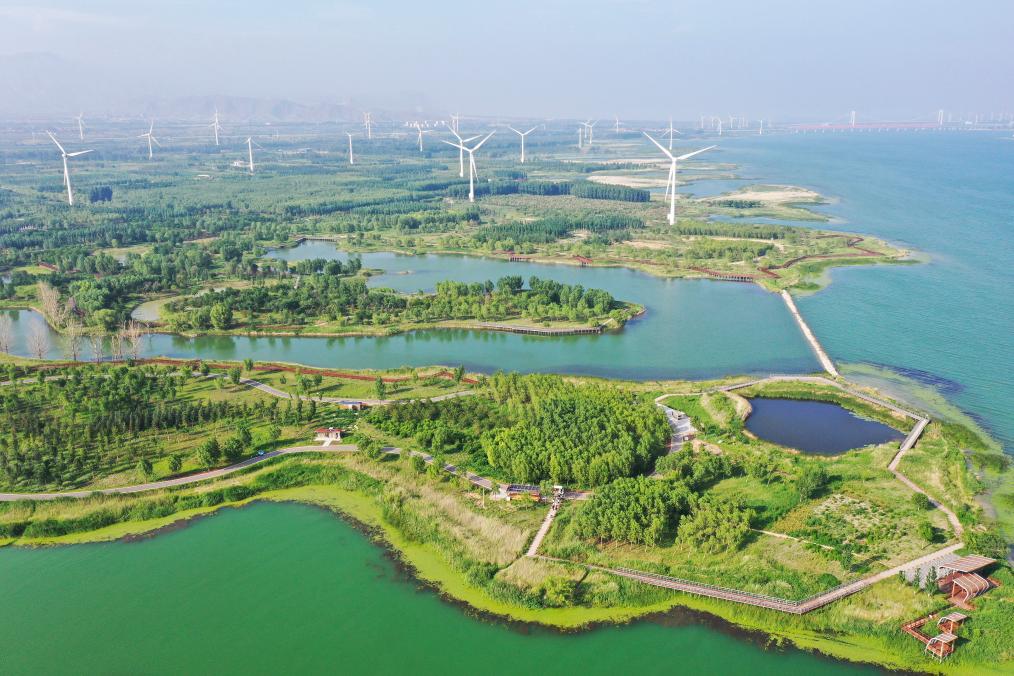 2021年7月8日拍摄的官厅水库国家湿地公园景色。