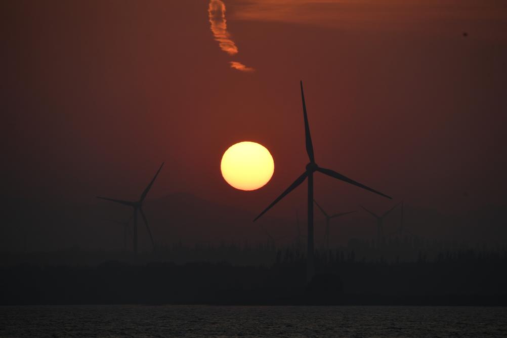 2023年9月5日拍摄的夕阳下的官厅水库。