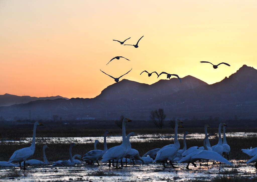 2024年3月5日在官厅水库国家湿地公园拍摄的天鹅。