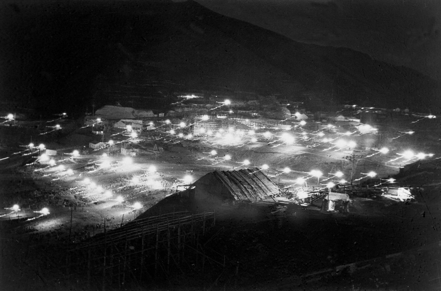 1953年拍摄的官厅水库工地夜景。