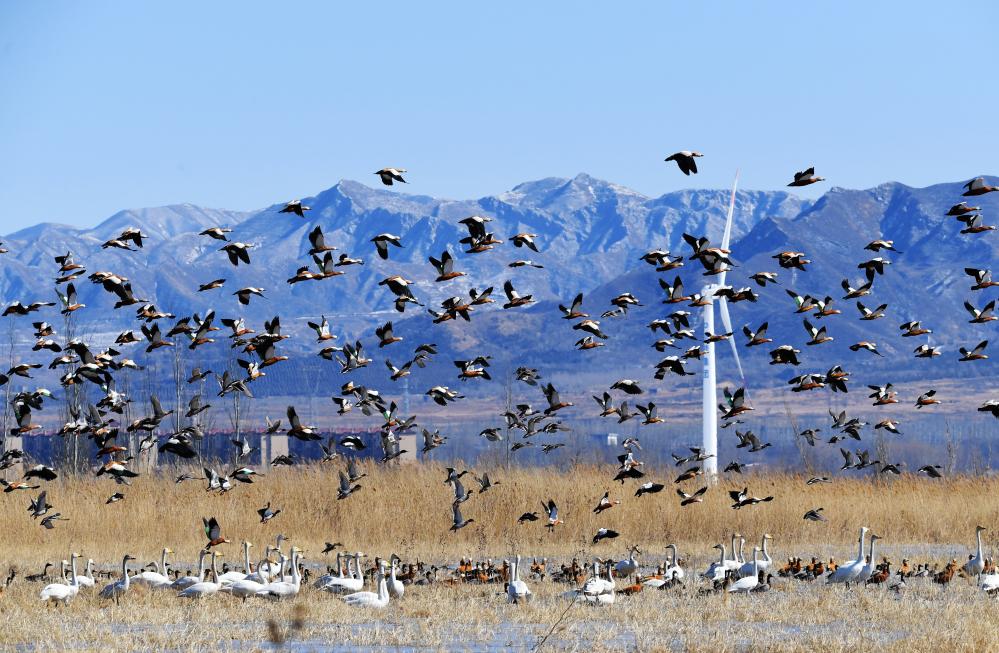 2019年11月20日在官厅水库国家湿地公园拍摄的候鸟。