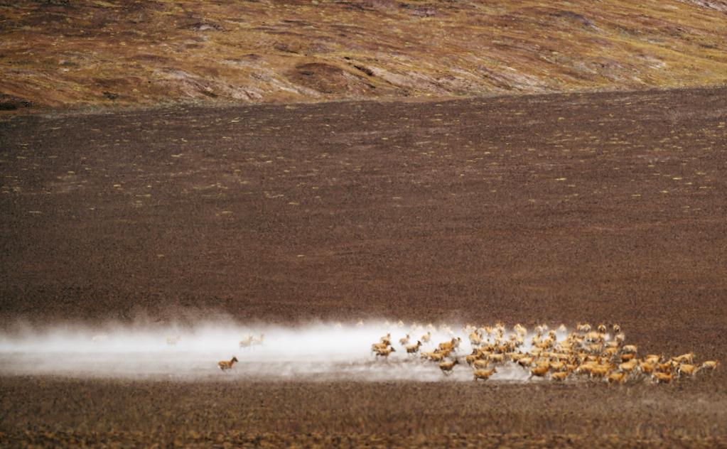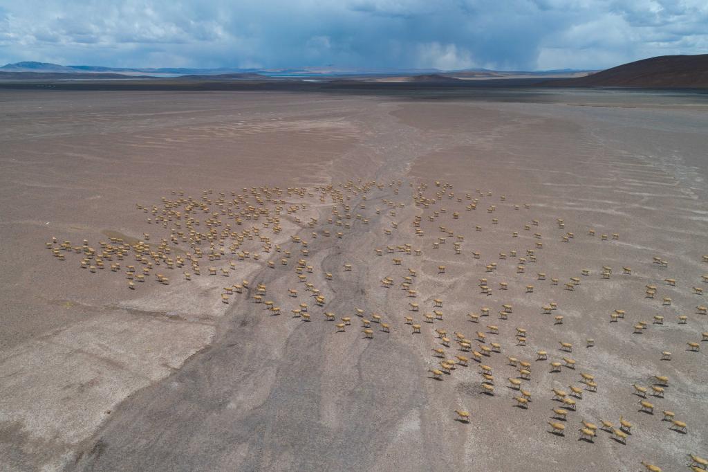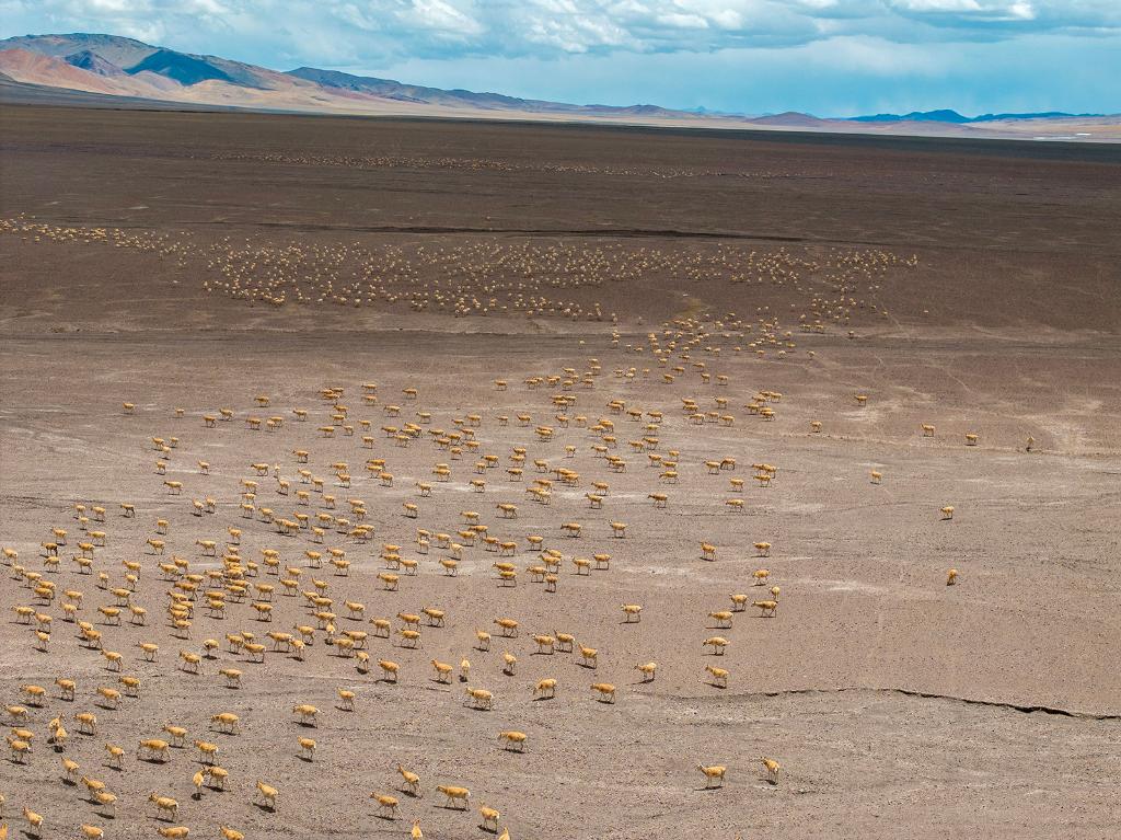 ↑ 数万头藏羚羊在羌塘国家级自然保护区迁徙。