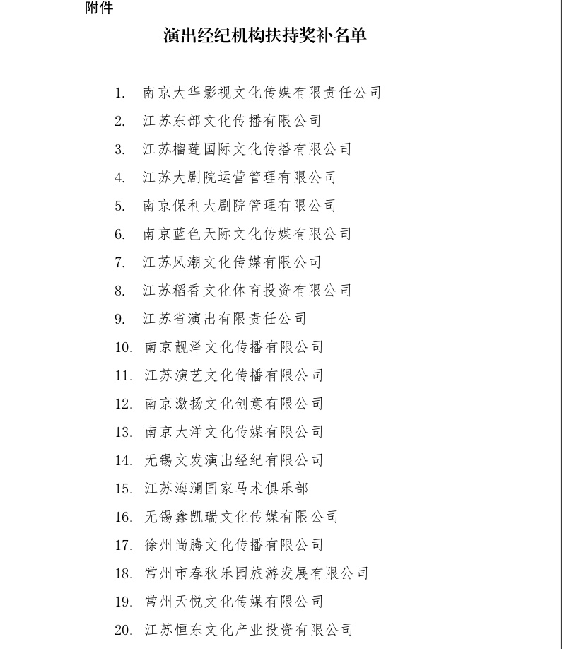 近日,江苏省文化和旅游厅对2022年演出经纪机构扶持奖补名单进行公示,苏州有14家机构榜上有名。