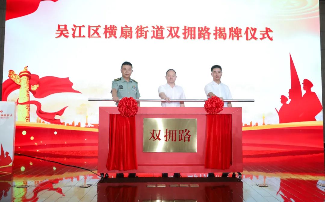 活动上,李震乾、肖刚、徐文磊共同为双拥路揭牌。经过近一年的筹划、设计和施工,横扇街道双拥路装饰工程已全面竣工,这是吴江区成为省双拥模范城展示的新亮点,为推动东太湖度假区双拥工作高质量发展打造的新阵地,更是横扇街道畅叙军民鱼水情所谱写的新篇章。