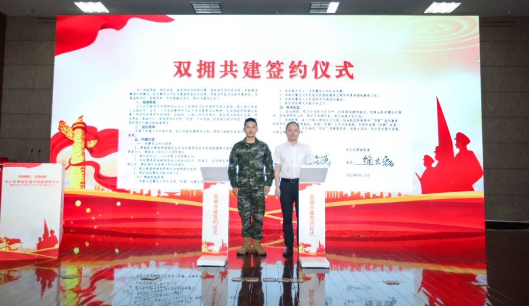 为了加强军政、军民团结,继承和发扬拥军优属、拥政爱民的优良传统,积极推进精神文明建设,活动中还举行了横扇街道与武警吴江中队双拥共建签约仪式,两家结为双拥共建单位。