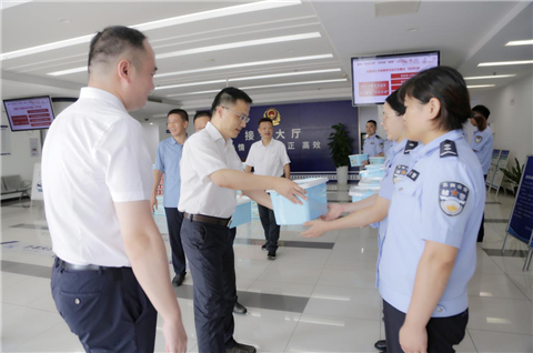 “入夏以来持续高温,大家坚守岗位守护群众安全出行,你们辛苦了。”在相城经开区澄阳街道派出所,管傲新与一线公安交警亲切交谈,详细了解高温季节交警执勤情况,叮嘱大家在工作时要做好防暑降温工作,加强个人防护,注意安全。同时,管傲新也慰问了交通志愿者,感谢他们为维护城市秩序和城市文明所作出的贡献。