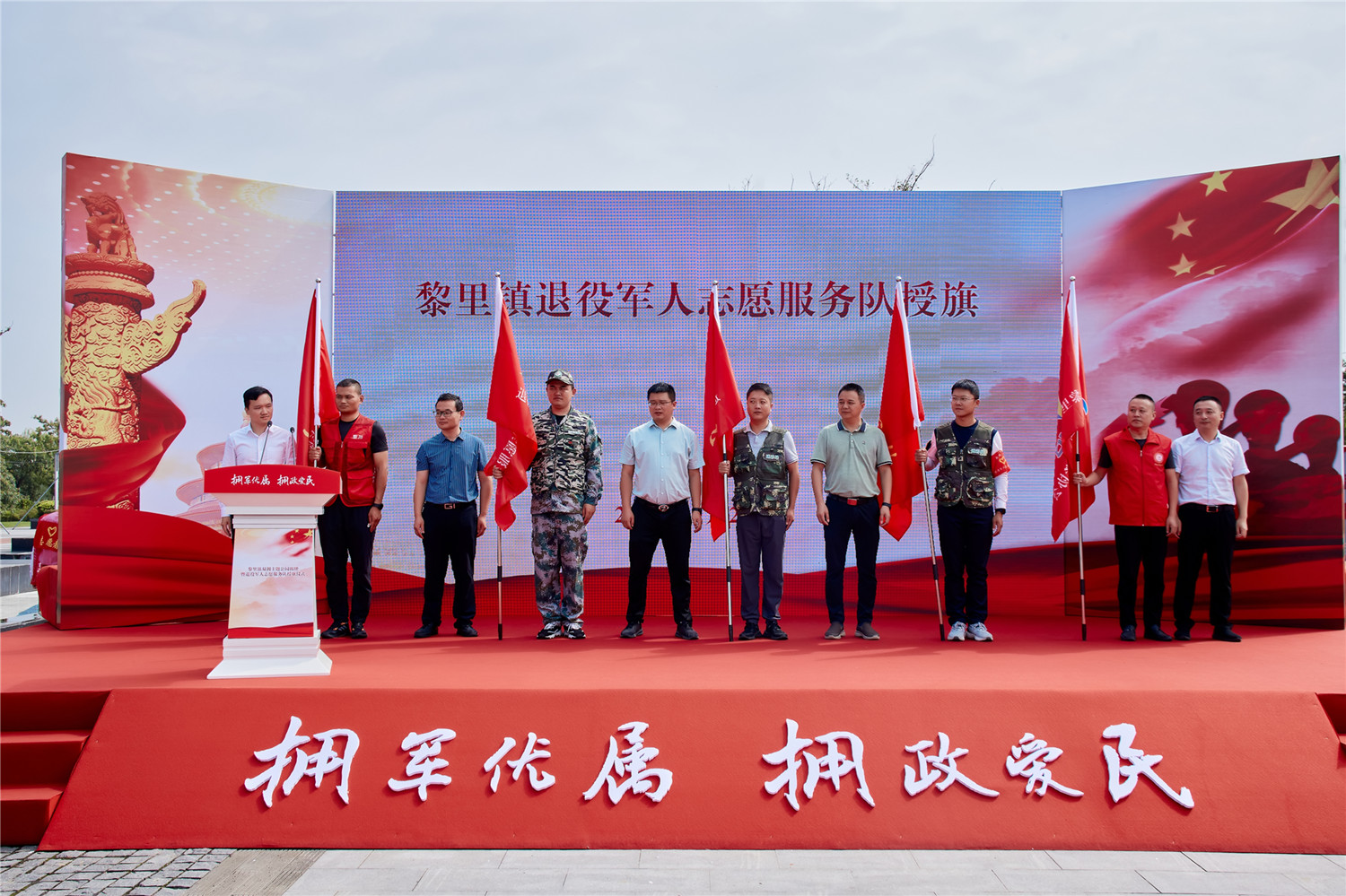 为进一步营造拥军优属、拥政爱民的浓厚氛围,打造新的爱国主义教育和国防教育阵地,9月29日上午,吴江区黎里镇双拥主题公园揭牌暨退役军人志愿服务队授旗仪式在三白荡生态公园举行。