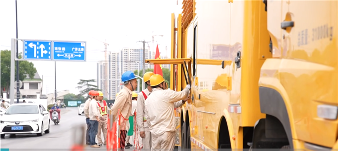 “大黄”身长10米、高4米,是一辆10千伏车载式可移动分布式电源,配置了柴油发电机组,最高能提供8小时1000千瓦的用电负荷,相当于222万个1万毫安时的充电宝电量。