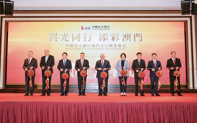3月22日,中国光大银行在澳门举办“与光同行·添彩澳门”澳门分行开业仪式。全国政协副主席何厚铧,中央人民政府驻澳门特别行政区联络办公室副主任严植婵,澳门特别行政区政府经济财政司司长李伟农,澳门金融管理局行政管理委员会主席陈守信,澳门中国企业协会会长傅建国,澳门银行公会主席李光亲临主礼,内地、澳门政商界知名人士及光大银行客户代表应邀出席。中国光大集团董事长、中国光大银行董事长王江出席仪式并致辞。中国光大银行执行董事、副行长曲亮参加活动。