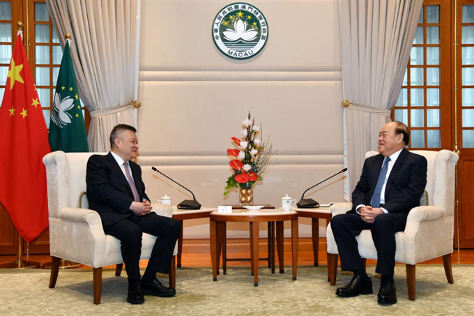 开业仪式前,王江分别拜会了澳门特区行政长官贺一诚、中央人民政府驻澳门特别行政区联络办公室主任郑新聪。