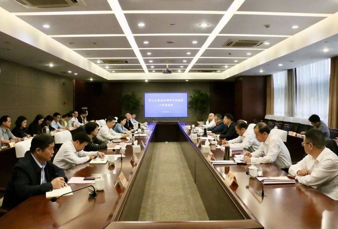 苏州市人大常委会副主任吴晓东主持座谈会,市人大常委会秘书长黄戟,市人大常委会副秘书长毛元龙,市人大常委会财经工委主任顾浩、预算工委主任邵华,苏州市市场监管局班子成员及相关处室负责人参加调研。