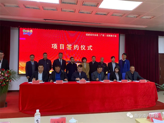 2月7日,2023年漳州华安县招商推介会在广西隆安县隆重举行。商会常务副会长陈元海参加此次招商推介会并上台签约2000多亩香蕉与沃柑项目。