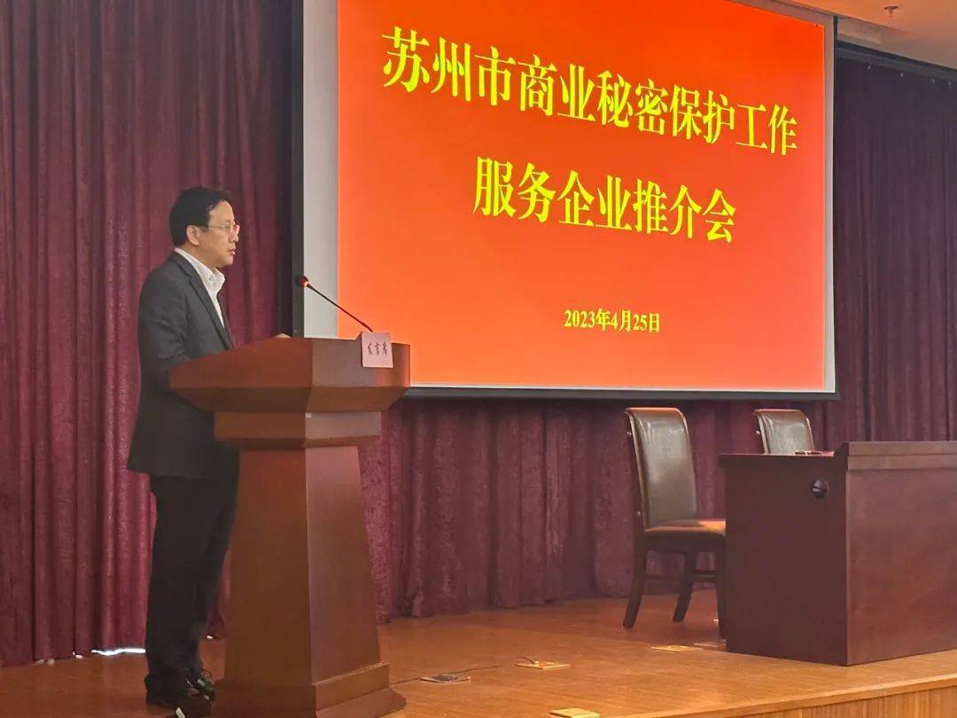 近日, 苏州市商业秘密保护服务企业推介会召开。 苏州市推进商业秘密保护创新试点工作领导小组办公室主任、市市场监管局副局长施卫兵出席会议。