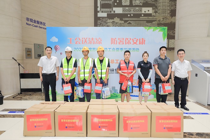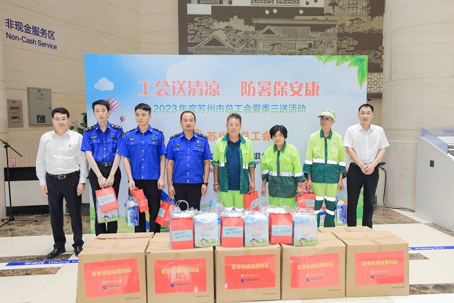 骄阳似火,热浪袭人。在这烈日炎炎、酷暑难耐的天气里,苏州建行携手苏州市总工会开展夏季安康“三送”慰问活动,深入建筑工地、高温作业企业、网约车服务中心等地,走访慰问在高温天气下坚守一线的户外工作者,累计发放1300份防暑降温礼包。