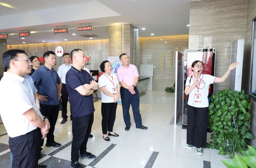 在张家港市退役军人事务工作综合展示馆,杨枫一行全面详细了解了张家港市退役军人事务工作,并对张家港市在全省率先推出优秀退役军人“积分进村”工程给予肯定。