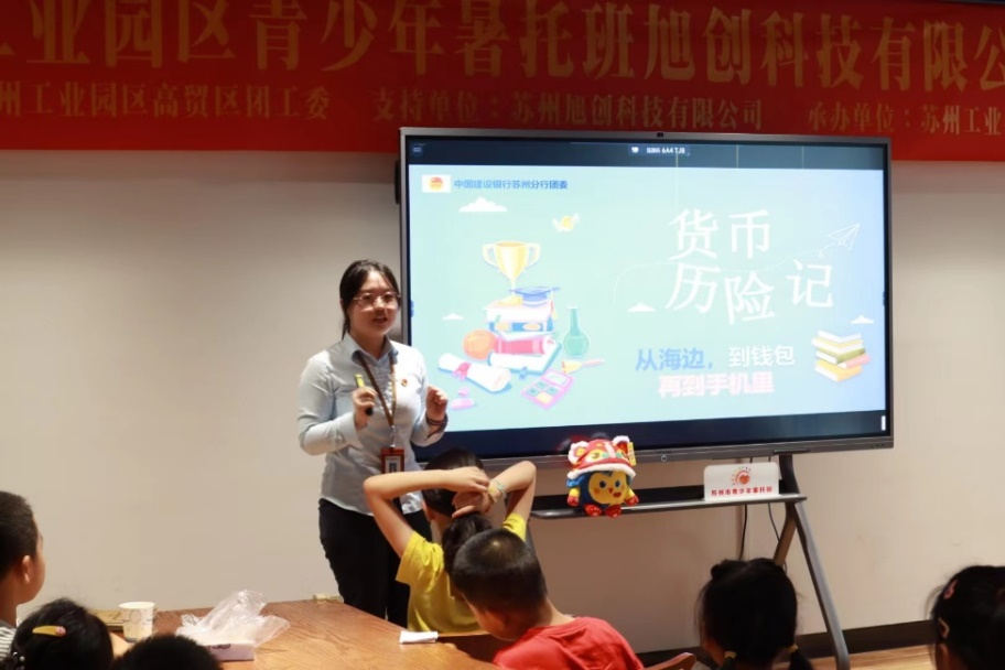 今年暑假,为缓解青年职工家庭未成年子女暑期照护难的现实痛点,助力苏州打造文明典范城市和青年发展型城市,苏州建行积极响应团市委号召,在苏州金融团工委指导下,依托建青志服、金融资源等优势,开设暑托班财商课程《货币历险记》,帮助青少年群体培养正确的消费观、金钱观,带领小朋友们开启一场妙趣横生的金融研学之旅。