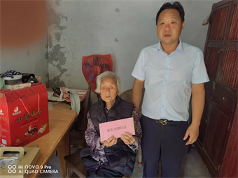 两委班子成员、队长们走村入户,为辖区八十周岁以上老人发放万丽公司定制的羊毛内衣套装以及十五元面券,为4位96周岁以上老人发放重阳糕、慰问品及慰问金500元并向他们致以节日祝福和诚挚问候。