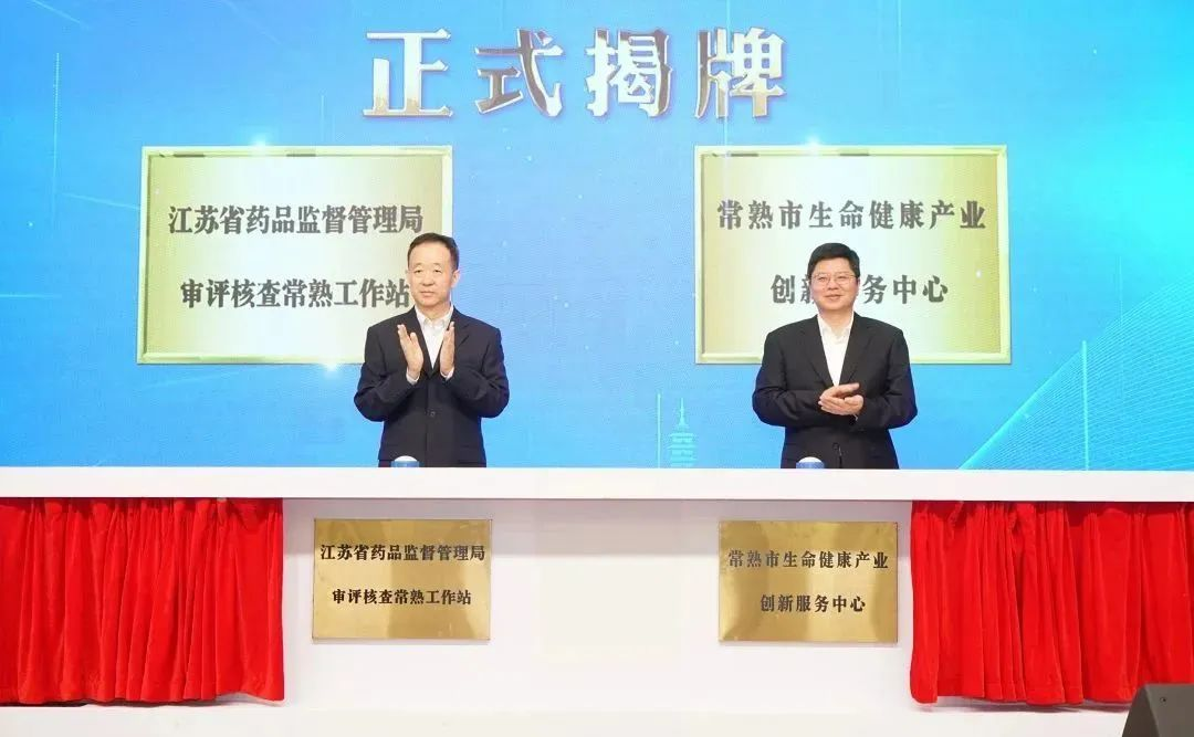 在苏州高新区工作站揭牌仪式现场,省药监局药品监管实训基地同时揭牌,江苏医疗器械科技产业园创新基地正式开园并入驻首批20个项目;在常熟工作站揭牌仪式现场,常熟市生命健康产业创新服务中心同时揭牌,常熟市古里镇政府与费森尤斯公司签署扩产项目投资协议。