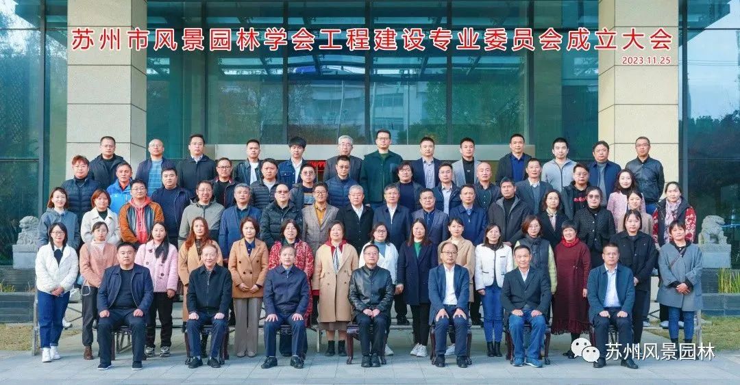 苏州市园林和绿化管理局局长曹光树、苏州市住房和城乡建设局副局长陈实、苏州市风景园林学会常务副理事长周苏宁、苏州风景园林投资发展集团有限公司副总经理嵇存海为工程建设专委会揭牌。