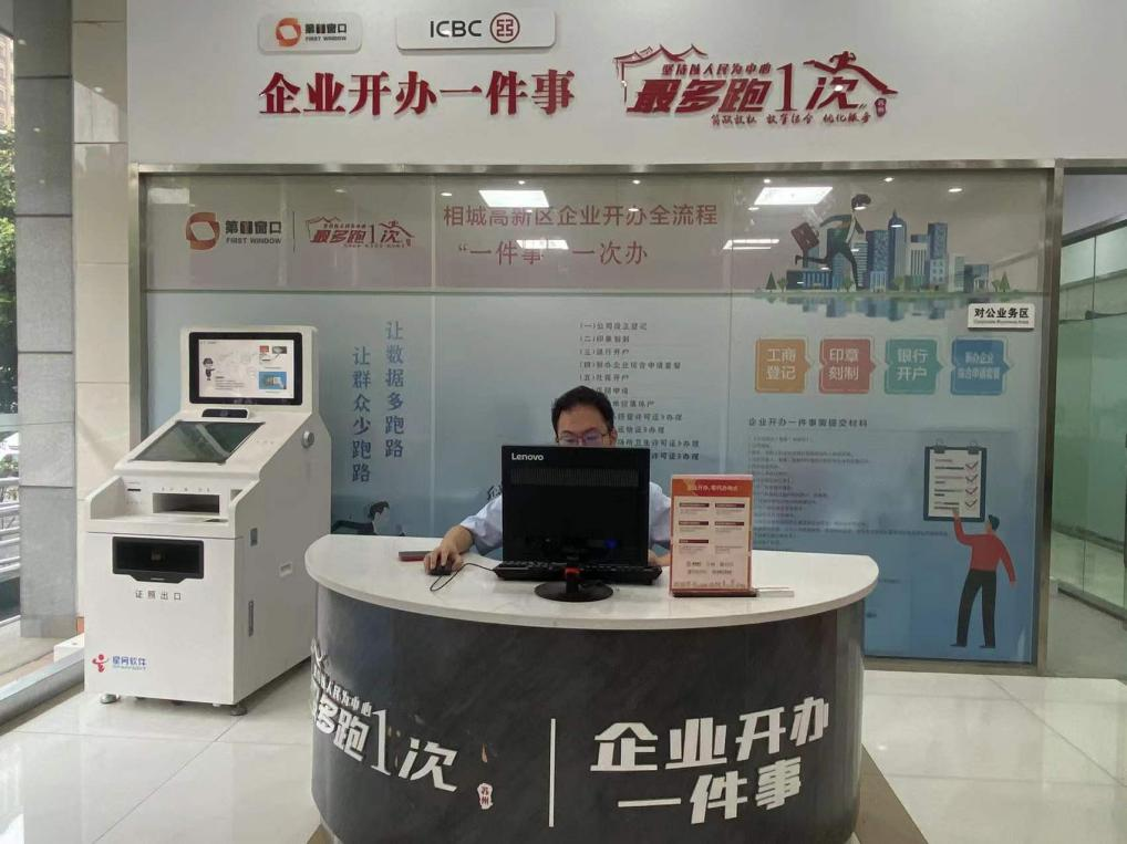 元和街道充分利用辖区内银行网点集聚、服务资源丰富的优势,将企业登记业务从政务服务窗口延伸至银行网点,在银行网点开设“企业开办一件事”服务专窗。通过政银合作,申请人可以享受免费的全流程帮代办服务,包括登记注册咨询服务、登记辅导、证照领取、银行开户、印章刻制、税务登记等“一站式”服务,0.5天内完成所有事项办结,并且可以在家附近的银行网点通过自助一体机打印营业执照,为申请人提供更多选择。