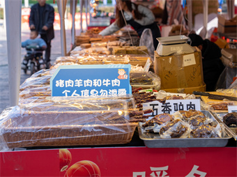 活动现场,装扮一新的摊位整齐有序排列,展位墙布以新年喜庆的红色为主色调,将年味拉满。繁忙而有序的年货市集、新年年货、互动游戏等等都让市民流连忘返。