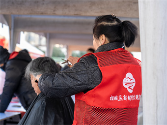 在“江苏好人”杨秀兰义剪摊位前,大爷大妈坐成一排,低着头享受着公益理发服务。老人们看着志愿者为自己剪出的满意发型,笑着说:“这样的活动是实实在在地为我们服务,切实感受到了温暖和关怀。”