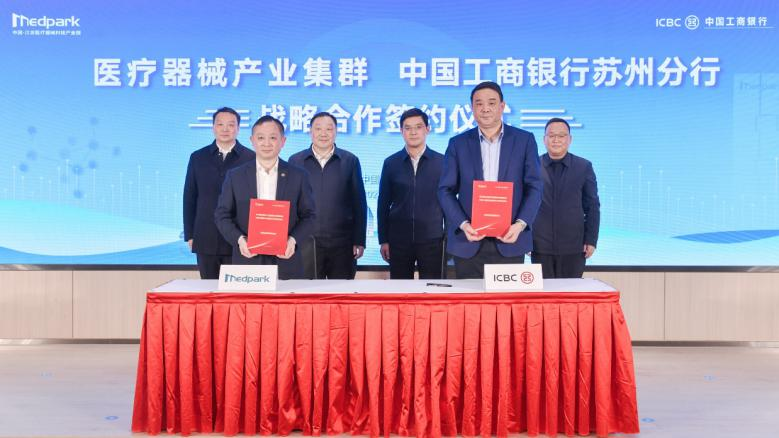 签约仪式上,“工商银行医疗器械产业园金融服务中心”正式揭牌。工商银行苏州辖内新区支行与产业园16家企业启动金融服务专项合作。
