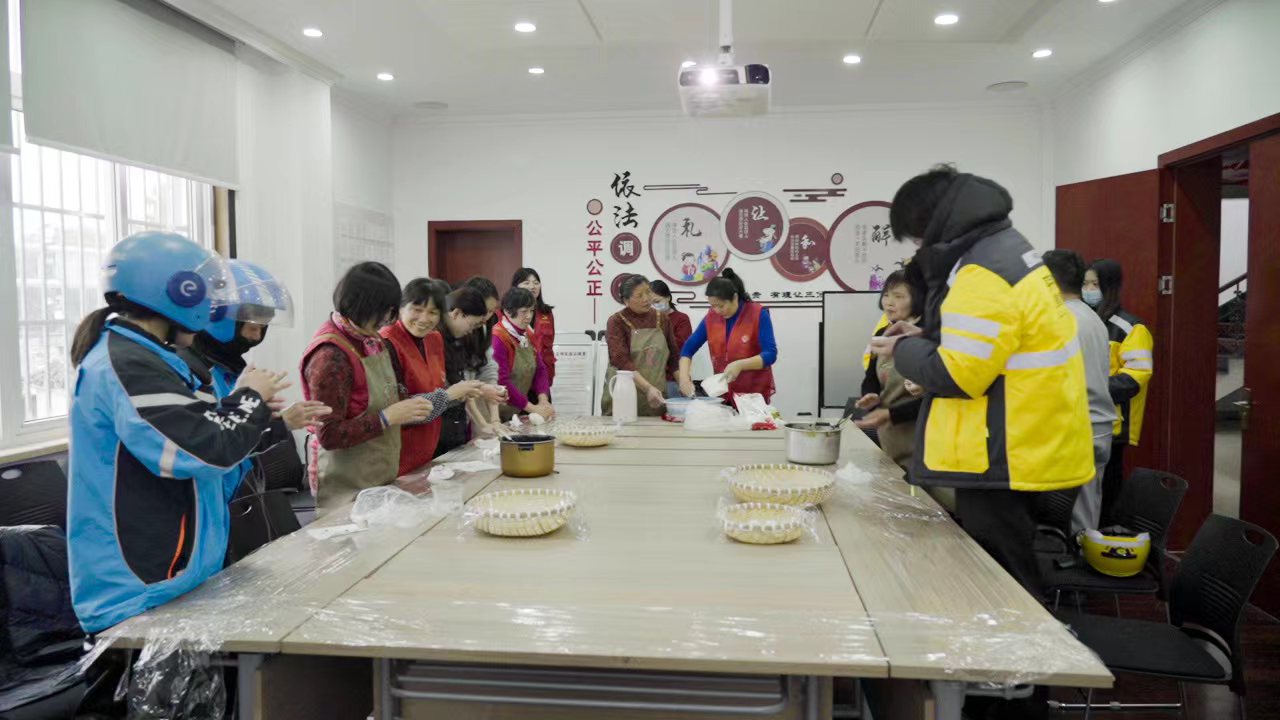 最后,党员代表、社区海棠先锋志愿者、外卖行业代表一起参与了现场包元宵活动。志愿者们也陆续将煮好的元宵送到了还在冬日里奔波的外卖小哥手中。“送的是元宵,吃的是温暖。”热气腾腾的元宵满载着对新业态新就业群体的关爱和温暖。