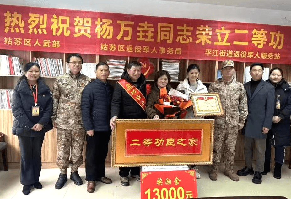 日前,苏州市姑苏区迎来今年首次为立功受奖现役军人家庭送喜报活动。姑苏区退役军人事务局与区人武部携手,为荣立二等功的杨万垚及荣立三等功的顾正文、宋福明、胡俊峰、乔继兵共5名现役军人家庭送上牌匾、鲜花、慰问金等,以简朴、庄重、喜庆的形式,将喜讯传达给家乡亲人。