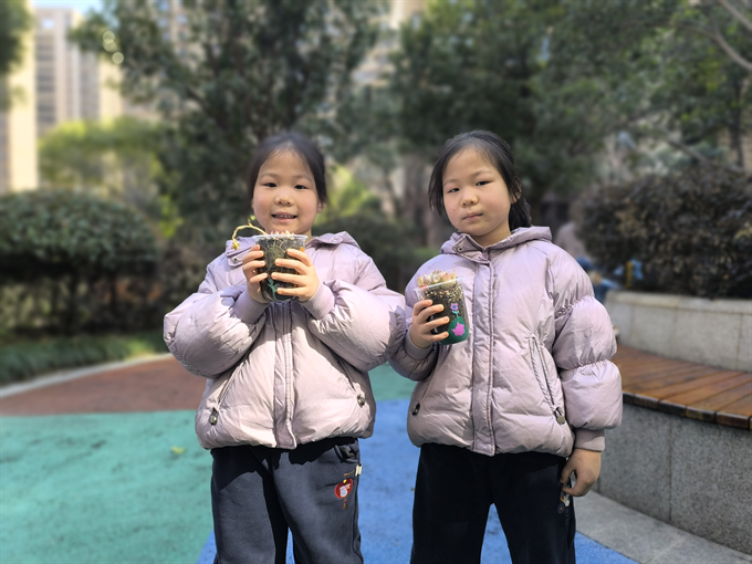 活动的延伸环节,孩子们利用废物构思变废为宝,将废弃大饮料瓶或奶茶杯,创作多肉种植容器,并使用丙烯马克笔绘画增添色彩,最后用小铲子在容器内填上营养土,装饰的小石子,一颗颗可爱的多肉植物就种植好啦。小朋友们纷纷展示自己制作的废物利用作品,满满的自豪感,大家互相学习和交流,现场氛围浓烈。