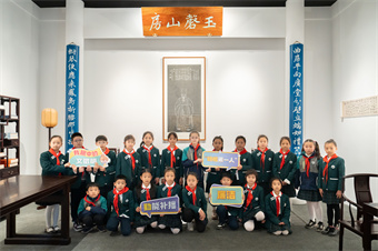 明楷第一人、四绝全才、勤能补拙的“笨小孩”......带着对文徵明的印象标签,同学们继续踏上研学之旅,走进孙武-文徵明纪念园,深度了解文徵明的生平事迹,探寻苏州文脉的深厚底蕴。在讲解员的带领下,大家瞻仰了文氏家族铜像、了解了文徵明的生平事迹、家风家训和书画作品等。满怀着崇敬之情,同学们还来到了文徵明墓前,献清明菊,诵先生诗,怀故人情。随后,同学们还向纪念园赠送了一批自己创作的书法作品,一勾一斫中尽显端方清润,一点一画中自有清雅刚正,充分展示了少先队员蓬勃向上的精神面貌。
