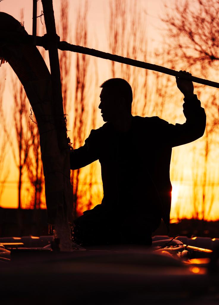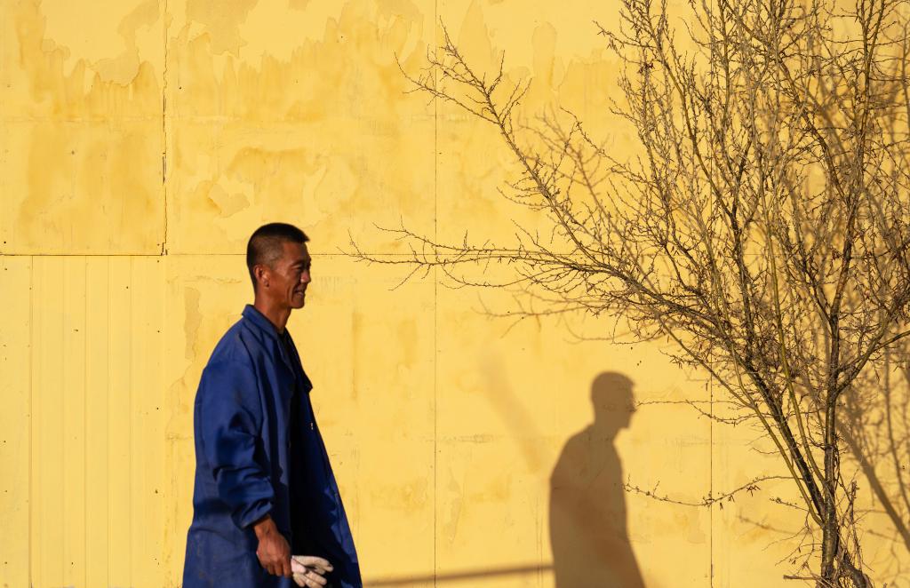 4月10日傍晚,在古浪县八步沙林场,郭玺准备回家。
