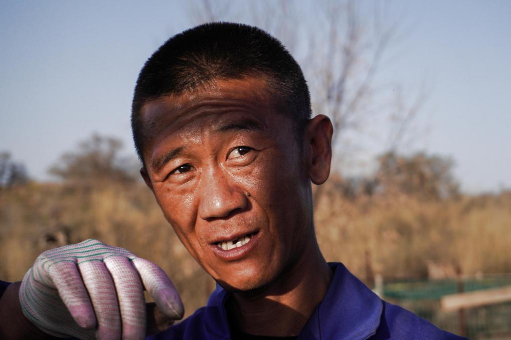 这是4月10日在古浪县八步沙林场林下经济养殖专业合作社拍摄的郭玺。