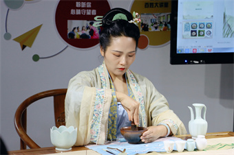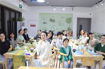 建元社区综合活动中心,四月中旬晚上六点半。正值下班高峰,有人戴着工作证赶来参加活动,有人和邻居相约共同前往......现场签到,国风着装。为大力倡导“茶为国饮”,进一步关注和传承茶文化,首期花YOUNG公开课主题内容为宋代四雅之一的宋代点茶。活动邀请了国家高级茶艺师,江苏省茶文化传播人,非遗宋代点茶青白三品点茶师——人慈老师为大家科普茶文化、行茶礼仪,并现场演示教授“七汤点茶法”。